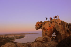 Před otevírací dobou památky na kamenném medvědovi nad vesnicí Palau.